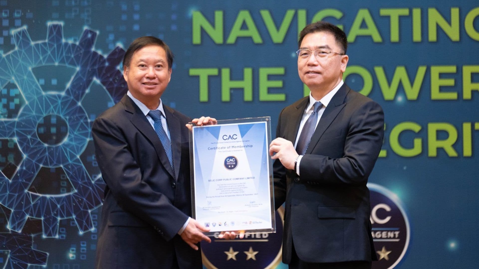 นายอัฒฑวุฒิ หิรัญบูรณะ (ซ้าย) ประธานกรรมการ บริษัท ซีลิค คอร์พ จำกัด (มหาชน) หรือ SELIC รับมอบประกาศนียบัตรรับรองการต่ออายุเป็นสมาชิกแนวร่วมต่อต้านคอร์รัปชันของภาคเอกชนไทย (CAC) ครั้งที่ 2 จากงาน CAC Certification Ceremony 2/2024 “Navigating ESG : The Power of Integrity” จัดโดยสมาคมส่งเสริมสถาบันกรรมการบริษัทไทย (IOD) สำหรับการเข้ารับประกาศนียบัตรในครั้งนี้ เพื่อประกาศเกียรติคุณให้กับ บริษัท ซีลิค คอร์พ จำกัด (มหาชน) ในการดำเนินธุรกิจบนหลักธรรมาภิบาล ควบคู่กับความมุ่งมั่นตั้งใจของบริษัทฯ ในการต่อต้านคอร์รัปชัน และให้การสนับสนุนแนวร่วมต่อต้านคอร์รัปชันด้วยดีเสมอมา โดยงานดังกล่าวจัดขึ้นเมื่อวันที่ 11 พฤศจิกายน 2567 ณ โรงแรมสยาม เคมปินสกี้ กรุงเทพฯ